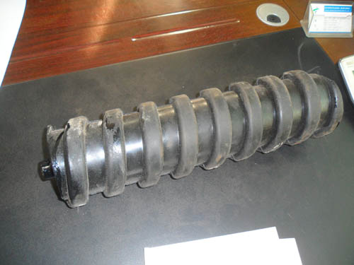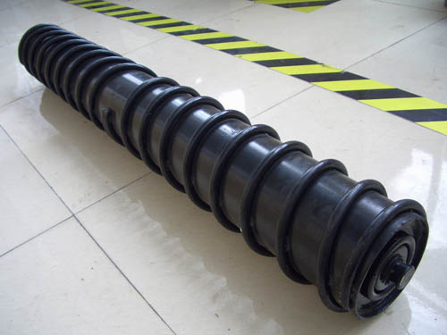螺旋橡膠托輥是引進(jìn)國外先進(jìn)技術(shù),針對化工行業(yè)固體粘濕物料輸送時(shí)存在嚴(yán)重問題開發(fā)研制的科技成果.我公司專業(yè)從事皮帶機(jī)螺旋橡膠托輥的制造和銷售,該產(chǎn)品在國內(nèi)享有千家的用戶,還遠(yuǎn)銷東南亞各國。該產(chǎn)品的問世,從根本上解決了帶式輸送機(jī)普遍存在的腐蝕,粘輥、膠帶跑偏和撕裂等嚴(yán)重問題。具有結(jié)構(gòu)新穎、安裝維修方便、自定中心輸送平穩(wěn)、不粘輥、噪音小,能耗低及延長膠帶使用壽命特點(diǎn)。填補(bǔ)了國內(nèi)空白,并被多家部屬化工設(shè)計(jì)院納入通用設(shè)計(jì)規(guī)范。